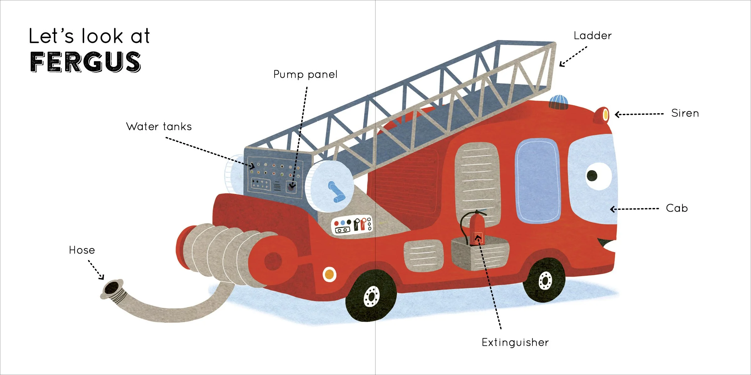 I was commissioned by Quarto Publishing to do the layout and design for two books in the Whizzy Wheels Academy series, “Fergus the Fire Engine” and “Tess the Tractor”. I enjoyed working with the publisher and illustrator to put these together.